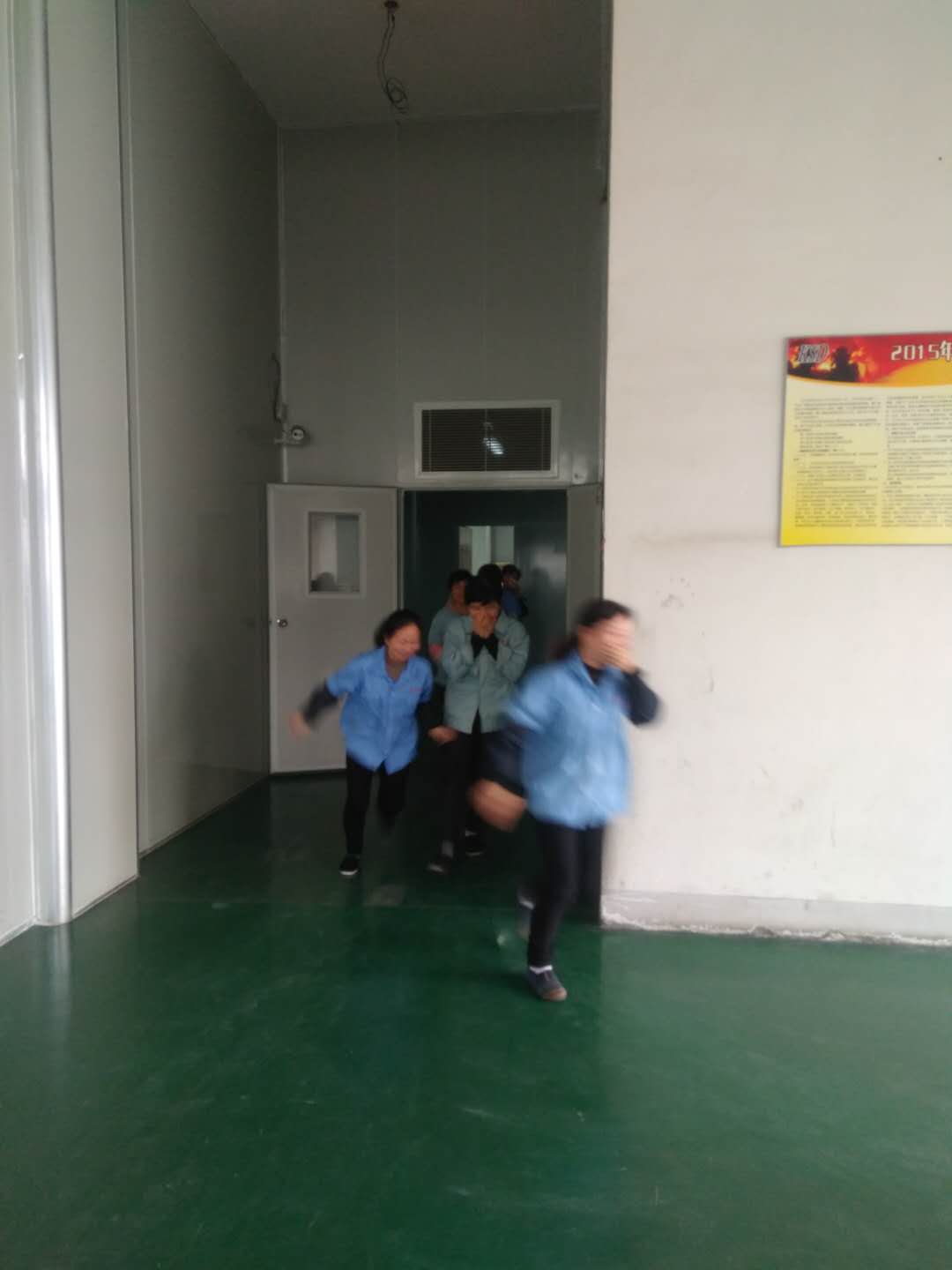 1、报警器拉响后全体职工迅速从车间前后门有序撤离。