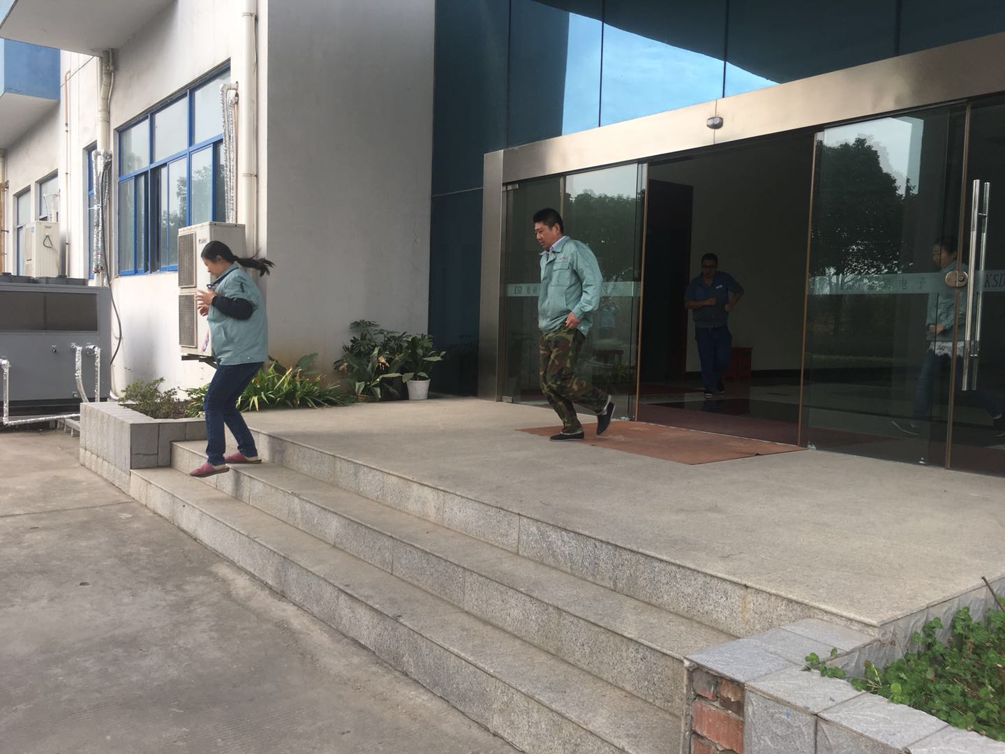 1、报警器拉响后全体职工迅速从车间前后门有序撤离。